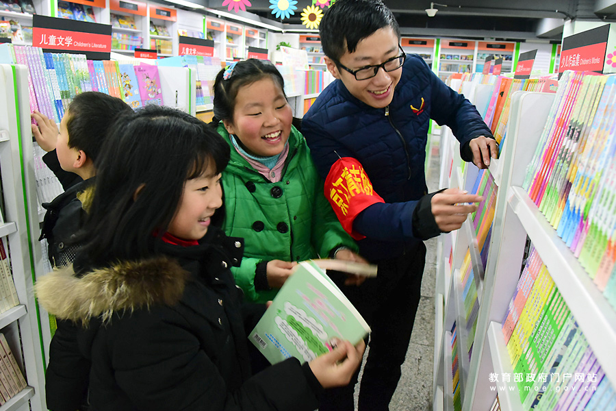 江蘇大學(xué)志愿者在為結(jié)對(duì)幫扶的留守兒童選購少兒讀物。近日,江蘇大學(xué)志愿者將他們結(jié)對(duì)幫扶的鎮(zhèn)江市世業(yè)鎮(zhèn)十多名留守兒童帶到市區(qū)新華書店,用日常節(jié)儉省下的零花錢為孩子們選購少兒讀物,指導(dǎo)留守娃們多讀書、讀好書,度過快樂的書香寒假。(石玉成 高伏康/攝)
