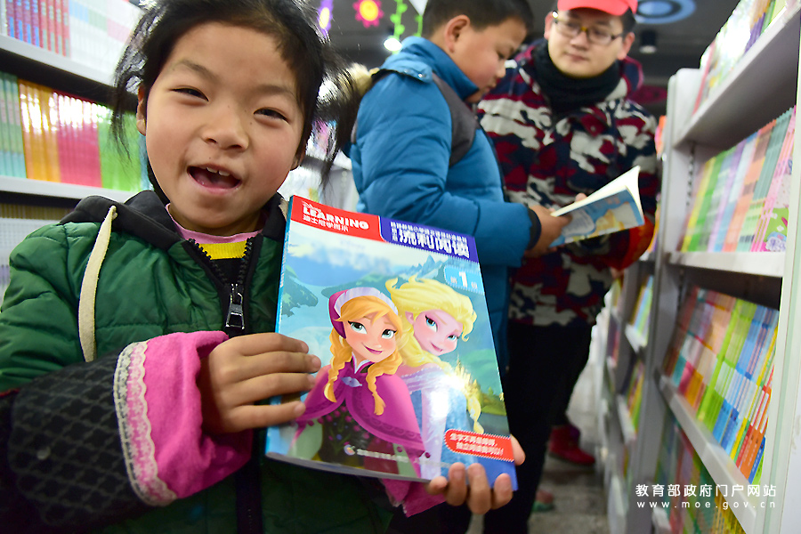 一名留守兒童在展示志愿者為她選購的少兒讀物。(石玉成 高伏康/攝)
