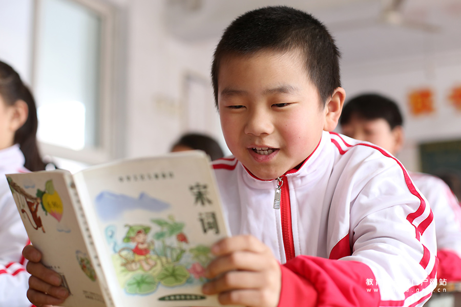 1/0學(xué)生在閱讀經(jīng)典詩(shī)詞。(徐宏星/攝)