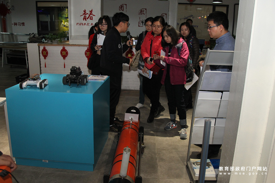 1/02017年3月27日下午,采訪團(tuán)一行人來(lái)到國(guó)家級(jí)眾創(chuàng)空間——飛天眾創(chuàng)空間。飛天眾創(chuàng)空間是以航空航天航海、機(jī)器人、智能制造、互聯(lián)網(wǎng)+、信息安全、無(wú)線傳輸、新能源新材料等領(lǐng)域和方向?yàn)楹诵牡母呖萍紕?chuàng)新創(chuàng)業(yè)空間。(于淼/文 樊世剛/攝)