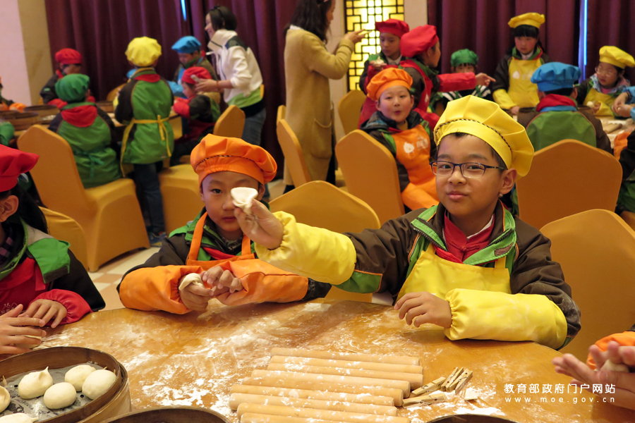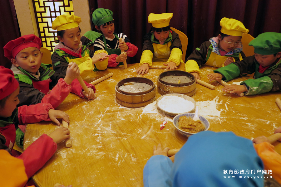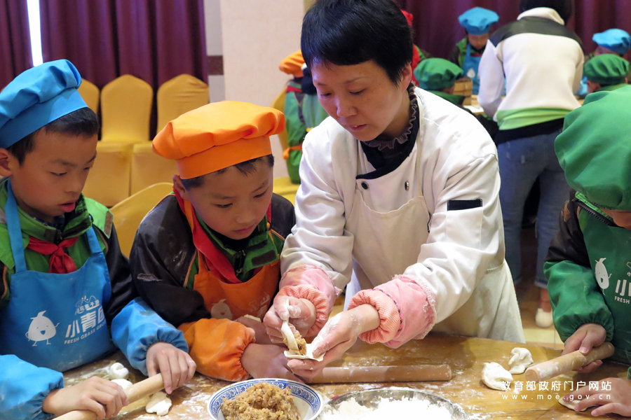 學(xué)生們在快樂實踐中學(xué)習(xí)面點技能,體驗飲食文化。(任曉妹 王雪晴/攝)