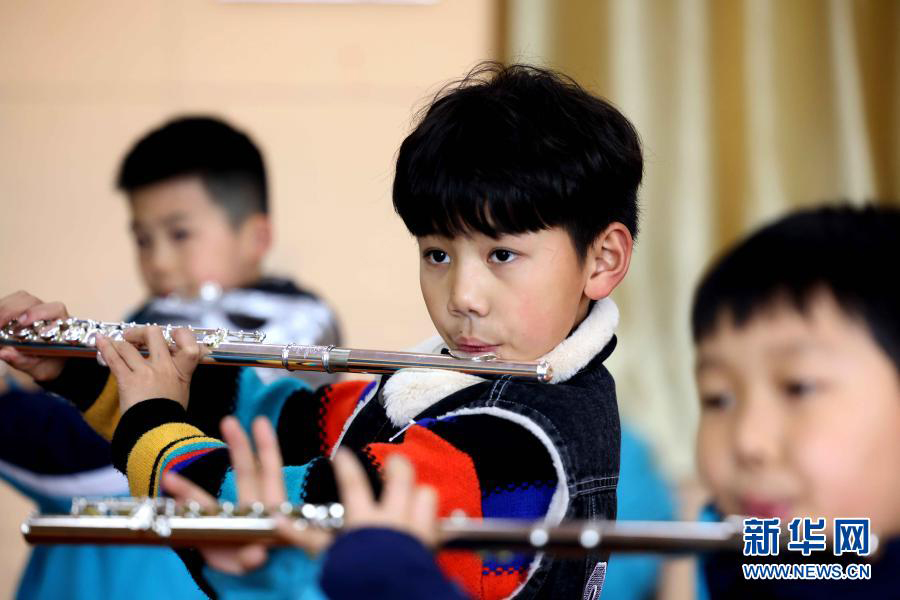 1/03月9日,在合肥市瑤海區(qū)少兒藝術(shù)學(xué)校,孩子們在“三點半課堂”練習(xí)長笛吹奏。(新華社發(fā) 解琛/攝)