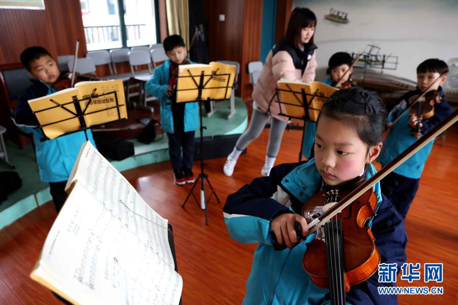 1/03月9日,在合肥市瑤海區(qū)少兒藝術(shù)學(xué)校,孩子們在“三點半課堂”練習(xí)小提琴。(新華社發(fā) 解琛/攝)